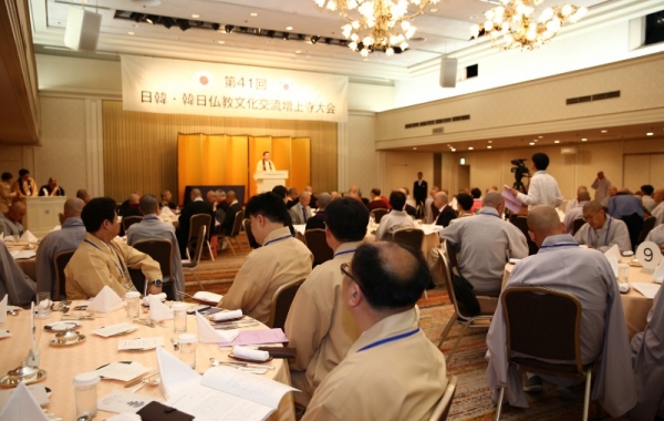 제41차 한일불교우호교류회의 일본대회가 6월 26일 오후 6시 일본 도쿄 프린스 호텔에서 환영만찬을 시작으로 막이 올랐다.대회에 앞서 열린 환영만찬에는 한국대표단에서 한일불교문화교류협의회 회장 진우 스님(조계종 총무원장), 차석부회장 도진 정사(진각종 통리원장), 부회장 우인 정사(총지종 통리원장), 이사장 상진 스님(태고종 총무원장), 사무총장 명안 스님(여래종 총무원장) 등 80여 명과 일본대표단에서 일한불교교류협의회 회장 후지타 류-조 스님, 부이사장 에즈레 슌유 스님, 사무총장 사토 류이치 스님, 증상사 법주 오자와 켄주 스...