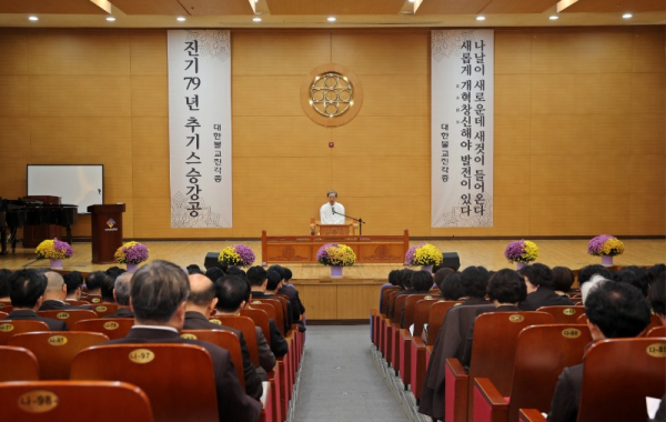 진각종은 10월 22, 23일 양일간 서울 총인원 일대에서 진기 79(2025)년 추기스승강공을 봉행했다.전국의 스승이 한자리에 모인 가운데 ‘나날이 새로운데 새것이 들어온다. 새롭게 개혁창신(改革創新)해야 발전이 있다’를 주제로 열린 강공은 오전 10시 무진설법전 예참불사를 시작으로 △개회불사(방등심인당 주교 혜덕 정사) △총인법어 △주제강론(교육원장 정법 정사) △특강 ‘새 시대의 새 불교’(서울대 강성용 교수) △서원가 배우기 등이 진행됐다. 이튿날인 23일에는 △교법강론(통리원장 능원 정사) △교화체험담(옥정심인당 주교 지혜...