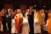 한국불교종단협의회(회장 자승 스님)는 4월 15일 오후 5시 서울 성동구 쉐라톤그랜드워커힐호텔 비스타홀에서 박근혜 대통령 초청 '한반도 평화와 국민행복을 위한 기원대법회'를 봉행했다.이날 행사는 진각종 통리원장 혜정 정사, 조계종 총무원장 자승 스님 등 종단협의회 소속 종단 대표자들과 유진룡 문화체육관광부 장관, 서남수 교육부 장관, 조윤선 여성가족부 장관, 박원순 서울시장, 정갑윤 국회 정각회장 등 사부대중 1천 여명이 참석한 가운데 문화공연에 이어 입정, 개회, 육법공양, 삼귀의례, 고불문(태고종 총무원장 인공 스님), 경전봉독(진각종 통리원장 혜정 정사), 봉행사(조계종 총무원장 자승 스님), 축사(박근혜 대통령), 음성공양(화청), 발원문낭독(천태종 총무원장 도정 스님), 사홍서원 순으로 진행됐다.육법공양에서는 박근혜 대통령과 자승 스님이 헌등을 하고, 유진용 문화체육관광부 장관과 인공 스님이 헌향을, 박원순 서울시장과 도정 스님이 헌다를, 정갑윤 국회 정각회장...