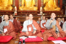 '자승 총무원장 연임 저지 및 청정승가 구현을 위한 전국선원수좌 대책위원회'(이하 수좌회 대책위)가 8월 29일 조계사 대웅전에서 입재식을 갖고 무기한 묵언정진에 들어갔다. 이날 입재식에는 수좌회 대책위 위원장에 석곡 스님, 부위원장 청암·남강 스님, 대변인 선법 스님 등 20여 명이 참여했다. 당초 3시에 진행될 예정이었던 입재식과 묵언정진은 2시간이 경...