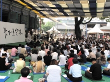 출·재가자가 함께 하는 사부대중 결사모임 '붓다로 살자'가 6월 22일 오후 3시 조계사 대웅전 앞마당에서 창립기념식을 갖고 공식 출범했다.이날 기념식에서 조계종 자성과쇄신결사추진본부장 도법 스님은 '붓다로 살자' 제안서를 통해 "우리는 그동안 스스로 중생이라 여기고 살며 붓다가 되자는 불교를 믿어왔다. 이제는 우리 스스로 본래 부처였으니 당장 붓다로 살자...