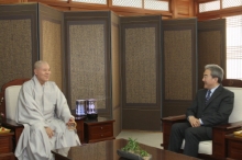 조계종 총무원장 자승 스님은 3월 11일 한국불교역사문화기념관 접견실에서 유진룡 문화체육관광부 장관의 예방을 받고 환담을 나눴다. 자승 스님은 "종단과 종무실은 한 부서, 한 이웃처럼 생각하고 이해와 교감을 갖고 있다"며 "이번 대통령 취임사에 국가운영철학으로 경제부흥, 국민행복, 문화융성이 담겨 있는데 문화융성을 바탕을 두지 않고는 경제부흥과 국민행복은 ...