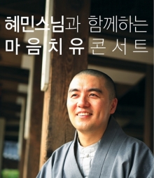 미국 햄프셔대학 교수 혜민 스님이 이 시대를 살아가는 사람들에게 희망과 자비의 메시지를 전하는 자리가 마련됐다. 조계종 포교원과 전법단이 지역포교 활성화의 일환으로 전국에서 ‘혜민 스님과 함께 하는 마음치유콘서트’를 개최한다. 6월 17일 오후 4시 서울 목동 국제선센터를 시작으로 대전(6월 28일ㆍ대전CMB엑스포 아트홀), 울산(7월 7일ㆍ한마음선원),...