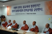 조계종이 6월 12일 오후 2시 한국불교역사문화기념관 2층 회의실에서 기자회견을 갖고 불교계 불법사찰과 정치공작을 강력히 규탄했다. 조계종은 중앙종회 의장단과 분과위원장 명의의 기자회견문을 통해 “집권 초기부터 특정종교 편향정책으로 종교간 갈등을 야기하고 끊임없이 한국불교와 헌법마저 파괴해버린 이명박 정부가 불교계를 대상으로 정치공작을 자행한 것이 만천하에...