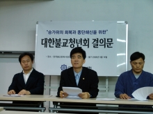대한불교청년회(회장 정우식)는 5월 14일 오후 2시 템플스테이통합정보센터 3층에서 기자회견을 열고 ‘승가 위의 회복과 종단쇄신을 위한 대한불교청년회 결의문’을 발표했다. 대불청은 결의문을 통해 “승가의 도박사건이 언론을 통해 계속적으로 확대재생산 되는 모습을 지켜보면서 ‘승가의 일이므로 지켜보자’는 태도는 더 이상 바람직하지 않다고 생각했다”면서 “먼저 ...