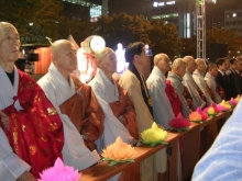 불기 2555년 부처님오신날을 알리는 부산지역 연등축제 봉축상징물 점등식이 4월 15일 오후 7시 부산역 광장에서 봉행됐다.이날 점등식은 부산시불교연합회 수석부회장 화산 스님, 진각종 부산교구청장 효원 정사, 임혜경 부산시교육감 등 사부대중 1천여 명이 참석한 가운데 봉축탑과 오색연등, 용 등 각종 봉축상징물 점등과 축하공연, 탑돌이 행사로 진행됐다.부산연...