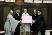 조계종 중앙신도회 산하 사회적기업 연우와함께(대표 이상근)는 2월 7일 한국불교역사문화기념관 4층 접견실에서 조계종 총무원장 자승 스님을 예방하고 민족문화수호기금 1천만 원을 전달했다. 이날 전달식에는 민족문화수호를 위한 중앙신도회 실천위원회 손안식 상임위원장, 연우와함께 이재원 경영부사장, 노욱선 사업부사장 등이 참석했다. 손안식 상임위원장은 “설날 제수...