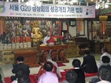 한국불교종단협의회는 11월 4일 조계사 대웅전에서 G20 서울정상회의 성공기원법회를 봉행했다. 진각종 통리원장은 개회사를 통해 "부처님의 가피원력으로 G20 서울정상회의의 성공을 기원하며, 부처님의 자비광명이 다시금 우리의 세상을 밝게 빛내기를 서원한다"고 했다. 조계종 총무원장이자 종단협의회장 자승 스님은 봉행사를 통해 "주요 국가의 정상들이 자주 모여 ...