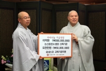 조계종 총무원장 자승 스님은 익명의 독지가가 기탁한 2억5천만 원의 성금을 아름다운 동행에 맡겼다. 자승 스님은 11월 5일 오전 9시 10분 한국불교역사문화기념관 4층 접견실에서 논산훈련소 군법당 건립 지원금 2억 원과 유네스코가 추진하는 저개발국 아동교육사업 기금 5천만 원으로 나눠 군종교구장 자광 스님과 사회부장 혜경 스님에게 각각 전달했다. 자승...