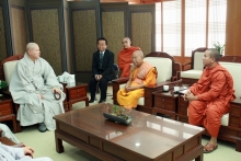 <?xml:namespace prefix = o ns = "urn:schemas-microsoft-com:office:office" />한국을 찾은 캄보디아 승왕 텝퐁 스님이 9월 28일 조계종 총무원장 자승 스님을 만나 양국 불교교류 등에 대해 환담을 나눴다. 이날 텝퐁 스님은 “지난 7월 캄보디아에 복지시설을 건립하는 등 활발한 교류지원...