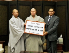 <?xml:namespace prefix = o ns = "urn:schemas-microsoft-com:office:office" />공익기부재단 아름다운동행(이사장 자승 스님)은 9월 3일 오전 9시 30분 조계종 총무원 4층 접견실에서 주한 파키스탄 대사를 통해 파키스탄 긴급구호기금 5만 불을 전달했다. 이날 전달식 참석차 총무원을 예...