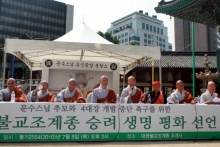 조계종 스님 5천여 명이 소신공양한 문수 스님 추모행사와 관련해 4대강 개발사업의 중단을 촉구하는 시국선언을 발표했다. 7월 8일 오후 2시 조계사 마당에서 열린 ‘문수 스님 추모와 4대강 개발 중단 촉구를 위한 조계종 승려 4,812인 생명평화선언’ 기자회견에는 조계종 전 교육원장 청화 스님, 동국대 정각원장 법타 스님, 송광사 율주 지현 스님, 직지사...