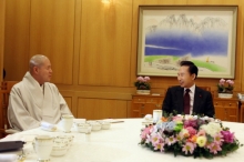조계종 총무원장 자승 스님이 12월 15일 오전 청와대에서 이명박 대통령과 조찬회동을 갖고 서민경제회복을 위한 국정운영을 요청했다고 조계종 총무원이 밝혔다.조계종 대변인 원담 스님은 정례브리핑에서 "오늘 조찬회동은 원장 스님의 취임 축하자리로 청와대에서 마련한 것"이라면서 "원장스님은 이명박 대통령에게 경제가 어려웠는데 정부와 대통령이 고생을 많이 하셔서 ...