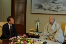 조계종 총무원장 자승 스님은 11월 2일 오후 2시 30분 한국불교역사문화기념관 4층 접견실에서 청와대 박형준 수석의 예방을 받고 환담을 나눴다. 자승 스님은 "불자회장님과 정무수석을 비롯한 청와대 불자들이 신심도 돈독하고 현안을 잘 알고 있어 일이 잘 될 것으로 생각한다"며 "취임식 후 일련의 일들을 바로 추진할 수 있도록 하자"고 말했다. 박 수석은 "...