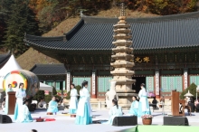 "해동성국 오대도량에서 진각밀법의 제자들이 심인진다를 불보살님께 지심공양 회향하오니 이 공덕을 섭수하사 일체 처가 밀엄정토 되기를 서원드립니다."진각종 신교도들로 구성된 (사)진각차문화협회(이사장 전경옥) 회원들이 10월 18일 강원도 월정사에서 열린 대한불교차인대회에서 다례공양을 시연했다.진각차문화협회 회원들이 이날 선보인 다례는 중앙(흰색 보)에 비로자...