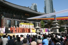 봉은사(주지 명진 스님)가 개산 1215주년을 맞아 창건주 연회 국사, 중흥조 허응당 보우 대사, 서산 대사, 사명 대사 등의 조사를 기리고 그 발자취와 원력을 되새기는 1215주년 개산대재를 봉행했다.개산대재의 첫 행사인 역대조사 다례재는 10월 18일 오전 11시 대웅전 앞마당에서 사부대중 3천여 명이 동참한 가운데 봉행됐다. 산철결제 중인 명진 스님을...