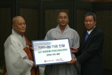 조계종 원로의장 종산 스님이 아름다운동행(이사장 지관 스님ㆍ조계종 총무원장)에 자비나눔기금 1천만 원을 전달했다. 9월 4일 오후 2시 한국불교역사문화기념관 4층 접견실에서 열린 전달식에는 종산 스님 대신 사회부장 세영 스님이 참석했다. 이 자리에서 지관 스님은 “원로의장스님께서 약값을 조금씩 모아 보내 오신 것에 대해 정말 감사하게 생각한다”며 “사회...