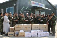조계종군종특별교구(교구장 일면 스님)와 장군가족 불자모임 성보회는 부처님오신날을 앞두고 4월 28일 강원도 양구 백두산부대 GOP를 방문해 자비나눔 선물 700개와 떡, 격려금 등을 전달했다.