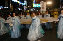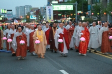 국내에서 가장 큰 공업 도시 울산에 경제극복을 염원하는 자비 나눔의 등불이 온누리에 환하게 비췄다. 울산광역시 부처님오신날 봉축위원회는 4월 28일 오후 8시 종하체육관→시청사거리→롯데마트사거리→현대해상사거리→현대백화점사거리→롯데백화점 광장까지 2.5㎞ 구간을 연등과 장엄등의 물결로 밤하늘을 수놓았다. 특히 진각종에서 세 마리의 용이 공작명왕을 호위하는 ...