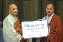도선사가 저소득․실직가정을 지원하기 위한 자비나눔기금 3천만원을 공익법인 아름다운동행에 기탁했다. 도선사 주지 선묵혜자 스님은 4월 23일 오전 10시 한국불교역사문화기념관 4층 접견실에서 조계종 총무원장 지관(아름다운동행 이사장) 스님에게 자비나눔기금 3천만원을 전달했다. 이날 전달식에서 혜자 스님은 “청계천에 전시됐던 대형 발우와 목탁 보시함에 십시일...