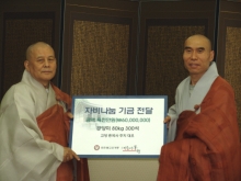경기도 고양시 흥국사 주지 대오 스님은 4월 14일 오후 3시 30분 한국불교역사문화기념관 4층 접견실에서 조계종과 공익법인 아름다운 동행에 저소득ㆍ실직가정을 위한 자비나눔기금 6천만 원을 전달했다. 이 기금은 고양시 불우이웃들을 위해 사용될 예정이다.이 자리에서 대오 스님은 "절집에 공양하는 것만 아니라 어려운 이웃을 위한 공양이 불공의 참 의미라고 생각...