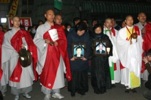 장례도 치르지 못한 용참참사 희생자를 위한 49재가 3월 9일 용산참사 현장에서 봉행됐다. 한국불교종단협의회 불교인권위원회(위원장 진관 스님)가 주관한 이번 49재는 태고종 영산재 이수자 스님 10명을 비롯한 인권위원회 스님, 유가족 등 사부대중 400여 명이 참석한 가운데 화마 속에서 운명을 달리한 고인들의 넋을 기리기 위한 영산재와 노제(路祭), 소...