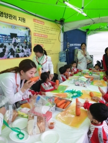 위덕대(총장 장익)가 위탁운영하는 경주시 어린이급식관리지원센터(센터장 이인숙·이하 경주시센터)는 10월 23일부터 26일까지 4일간 경주시 엑스포공원에서 진행된 ‘2019 경북국제식품박람회’에서 경북 23개 어린이급식급관리지원센터의 부스를 총괄하여 운영했다. 경주시센터는 어린이들의 건강한 식습관 및 식문화 정착을 위해 다양한 프로그램을 계획하여 참여한 타 센터의 직원들이 운영할 수 있도록 준비했다. 부스는 전시관(영양·위생 교구전시 및 뷰박스, 룰렛이벤트), 어린이 체험관(어린이 쿠킹클래스, 활동지 체험 등), 성인체험관(체성분 분석 및 영양상담)으로 세분화하여 박람회에 참여한 모든 시민들이 즐길 수 있도록 했다. 특히 어린이 쿠킹클래스 ‘당근아 놀자’는 경주시센터 특화사업으로 진행되었던 편식예방 요리교실로 당근탐색, 당근모양 가방만들기, 당근쨈샌드위치 만들기, 당근사과주스 시음, 당근왕관 만들기의 단계로 푸드브릿지를 적용해 구성했다. 부스를 찾은 아이들과 부모들은 쿠킹클래스에 매료...